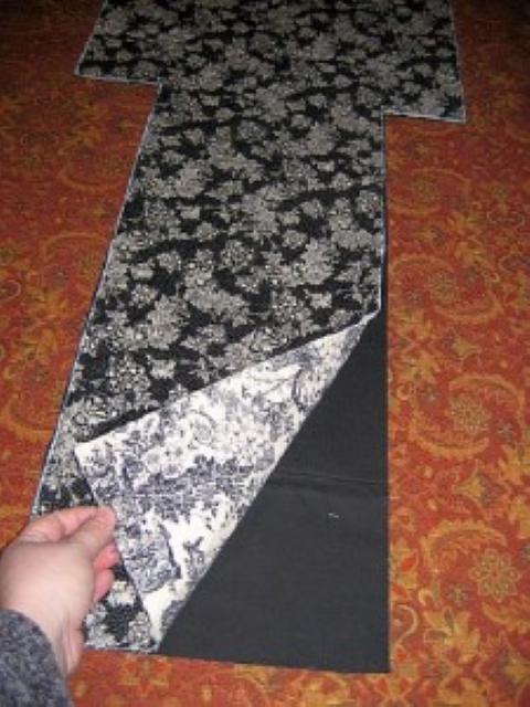 If you want to add the interior pockets to the divider, now is the time, after cutting out the piece, and before you assemble and pad the interior divider. After this, I padded the interior divider in a similar manner, and lined up it's side edges with the side edges of the back panel. I folded the main back piece into place, and pinned it all together. This made for quite a thick arrangement of layers, which I had to sew by hand, not having an industrial sewing machine.